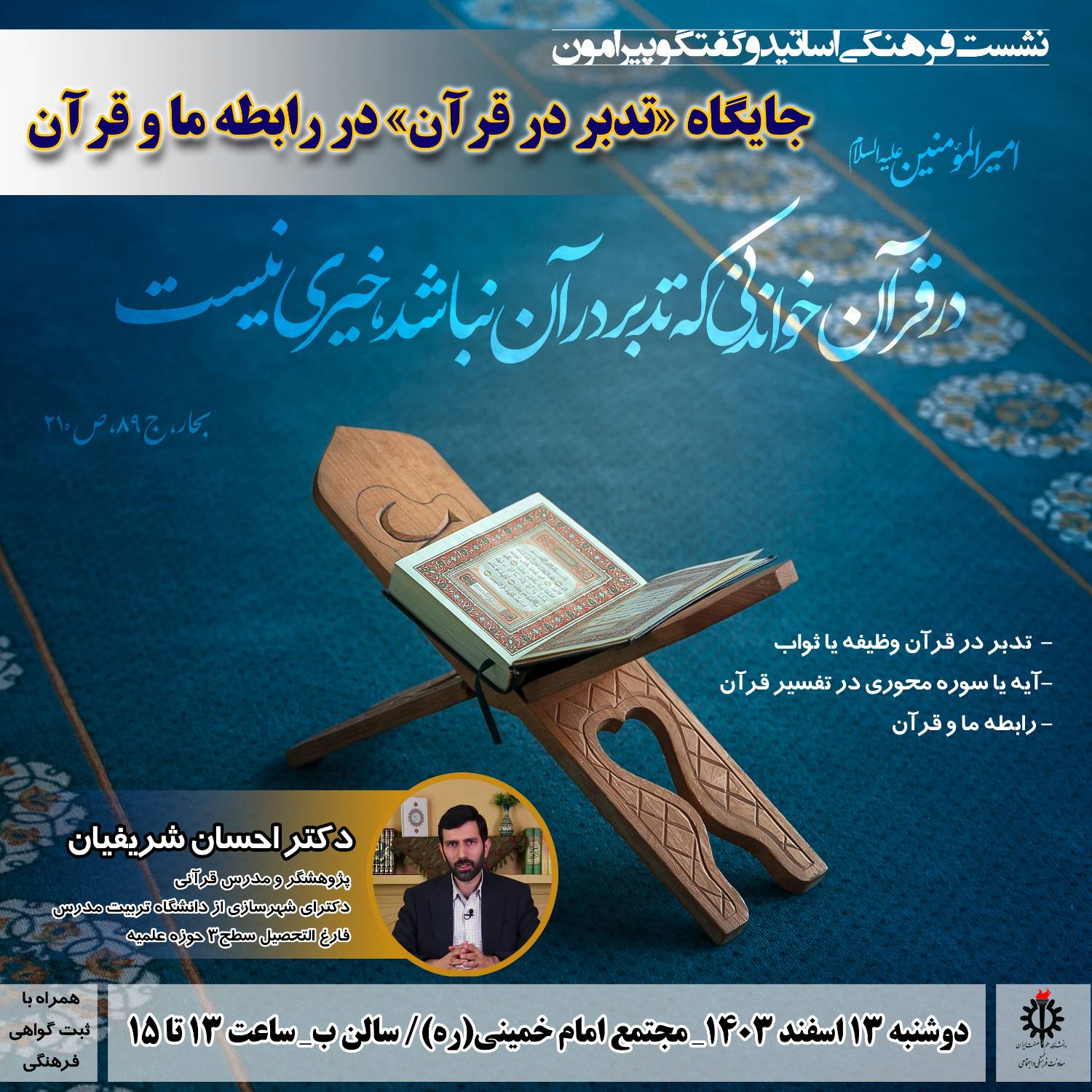 نشست فرهنگی اساتید با موضوع جایگاه «تدبر در قرآن» در رابطه ما و قرآن