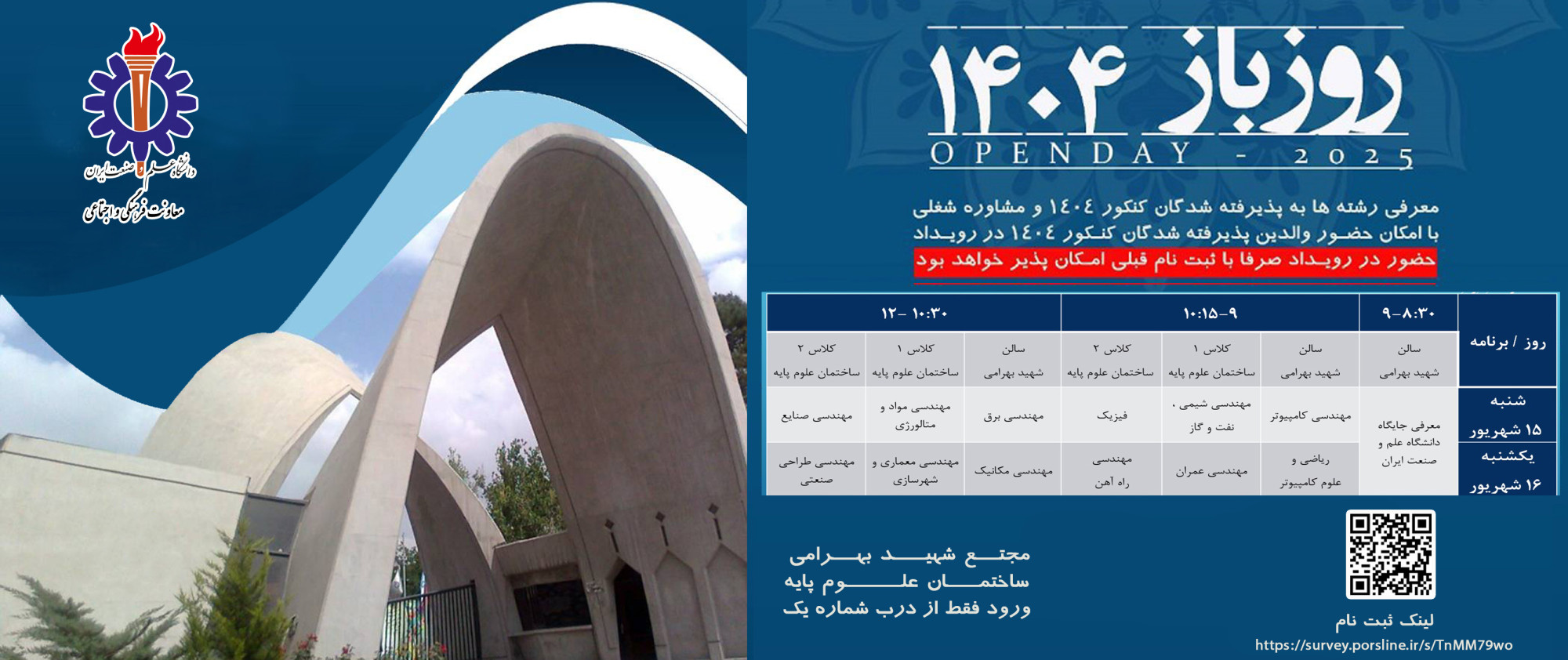 روز یکشنبه ۱۶ شهریور ۱۴۰۴ روز دوم برنامه روزباز ۱۴۰۴ در دانشگاه علم و صنعت ایران بود.
